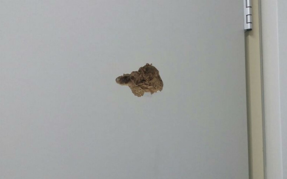 Tiro efetuado por Guilherme Lopes atingiu porta do procurador-geral de Justiça (Arquivo) — Foto: Fred Carvalho/G1