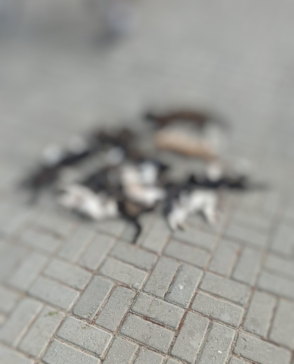 "Cheguei por volta de 7h e o senhor que costuma alimentar eles já tinha encontrado os gatos mortos, espalhados pelo Polo. A maioria era filhote e estava com o pescoço quebrado, então o senhor foi juntando os gatinhos sem vida", relata.