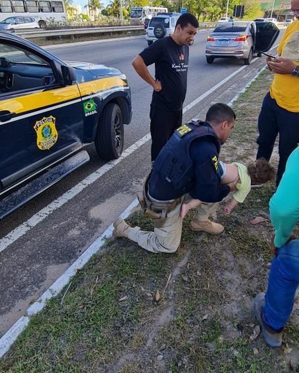 Eles pararam o carro na BR-101, próximo ao viaduto de Ponta Negra, e pessoas tentaram socorrer a criança. Uma viatura da Polícia Rodoviária Federal que passava pelo local foi chamada pela população e os agentes realizaram a manobra de desengasgo.