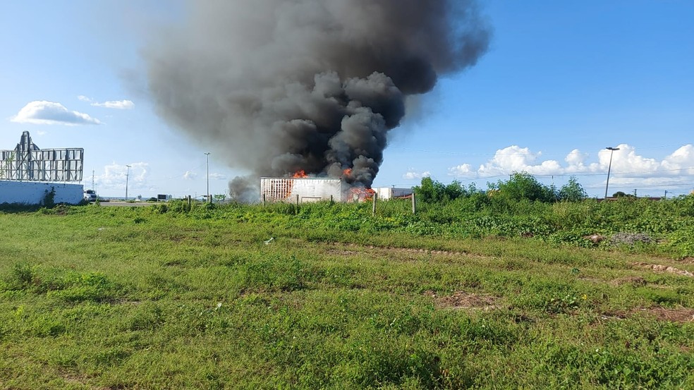 Caminhão carregado de fraldas pega fogo na BR-304, em Mossoró — Foto: Cedida