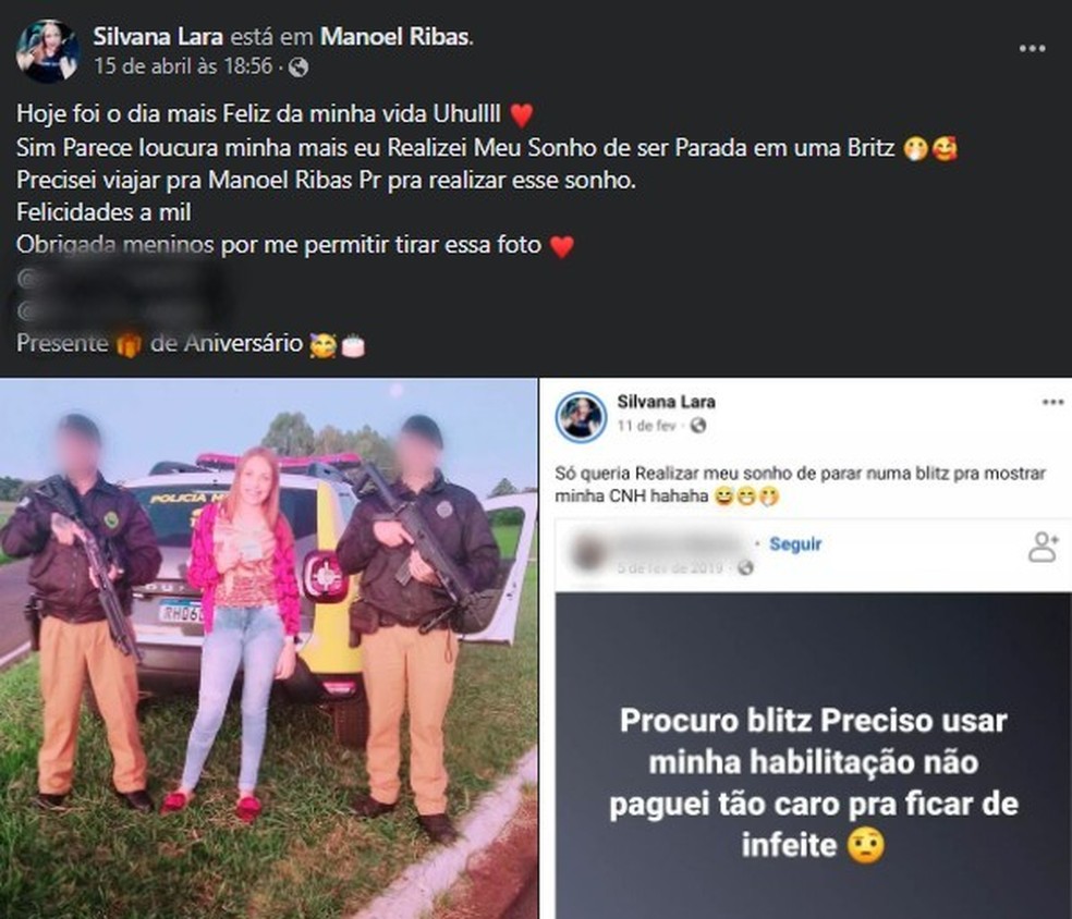 Paranaense faz post para comemorar realização de sonho de ser abordada em blitz — Foto: Reprodução/Facebook