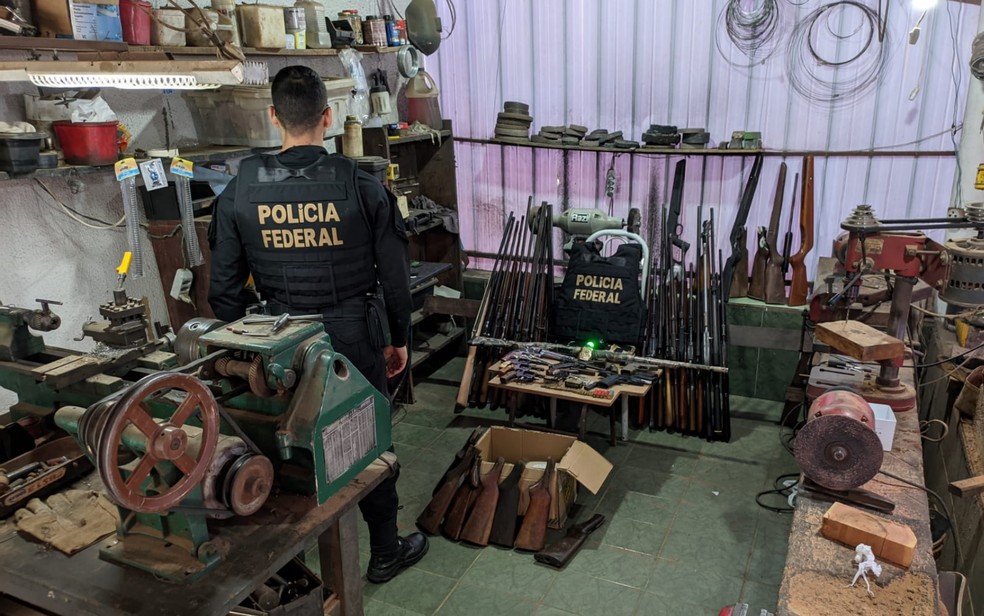 O inquérito policial começou após a Polícia Federal receber denúncia de moradores sobre o funcionamento da oficina de reparos, serviços, customizações e restaurações de armas sem autorização legal.
