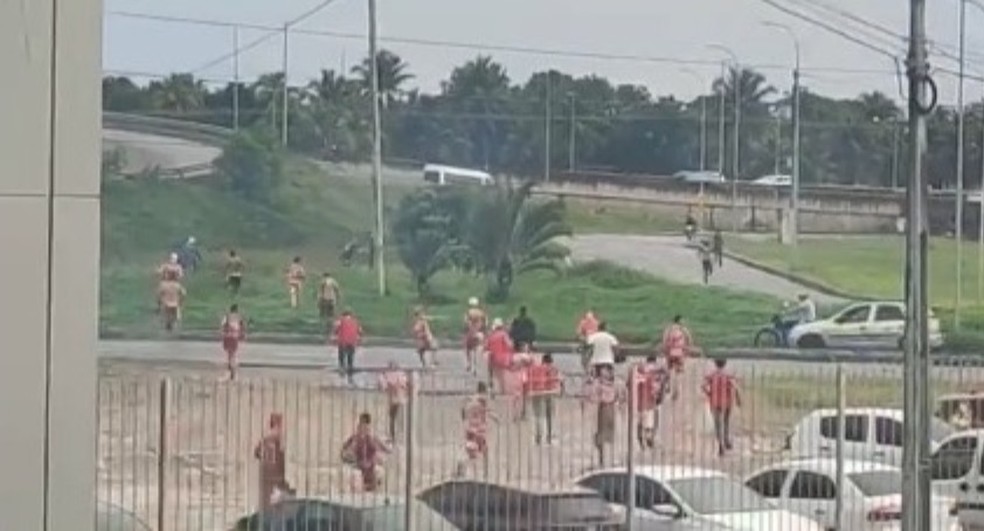 Momento que a torcida do América-RN sai do estádio. — Foto: Reprodução/TV Cabo Branco
