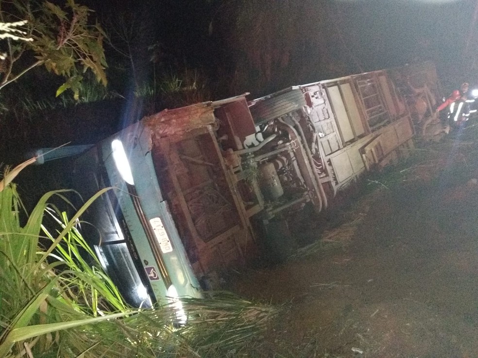 A Polícia Rodoviária Federal informou que o acidente aconteceu por volta de 0h50. O ônibus tombou após sair da pista e descer uma ribanceira. A causa do acidente ainda está sendo apurada, mas o motorista contou à polícia que tentou evitar uma colisão traseira com um carro e por isso saiu da pista.