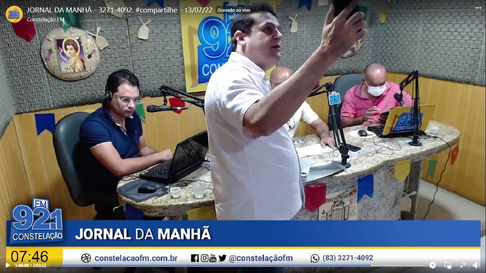 Célio Alves invade estúdio de rádio em Guarabira — Foto: Reprodução/Constelação FM