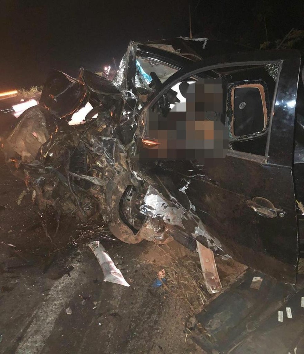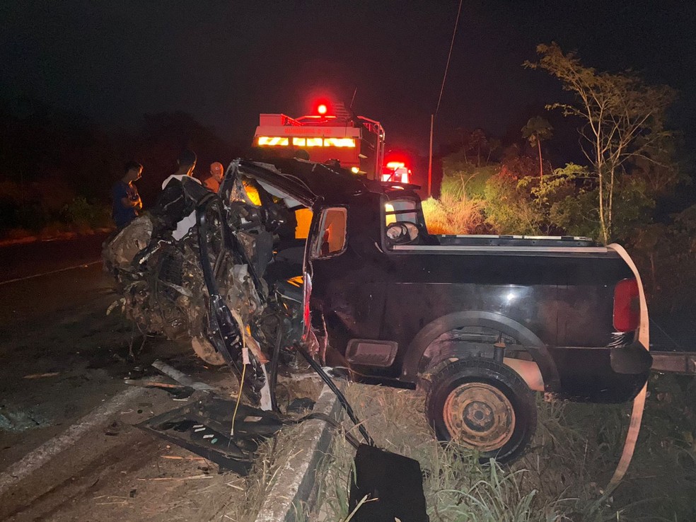 Duas pessoas que estavam na picape morreram — Foto: Divulgação/Corpo de Bombeiros