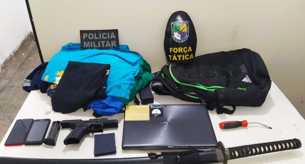 Com ele foram encontrados, a pistola roubada, dois aparelhos celulares, um notebook e uma chave de fenda.