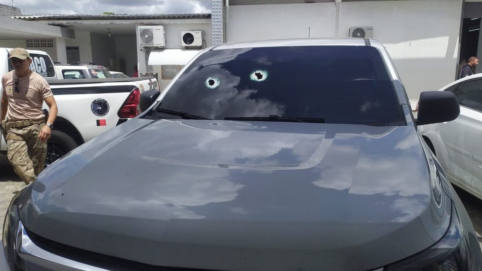 Carro usado por policiais foi atingido por tiros durante operação na PB — Foto: Divulgação/Polícia Civil da Paraíba