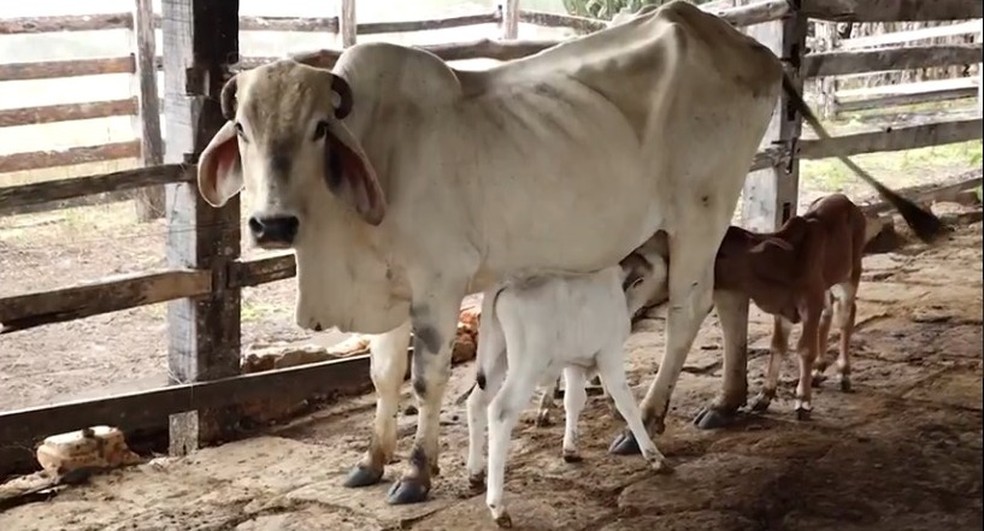 Joan Teles, gerente da fazenda, disse que nunca viu nada parecido. A chance desse tipo de situação acontecer entre bovinos, segundo especialistas, é de um a cada cem mil animais.