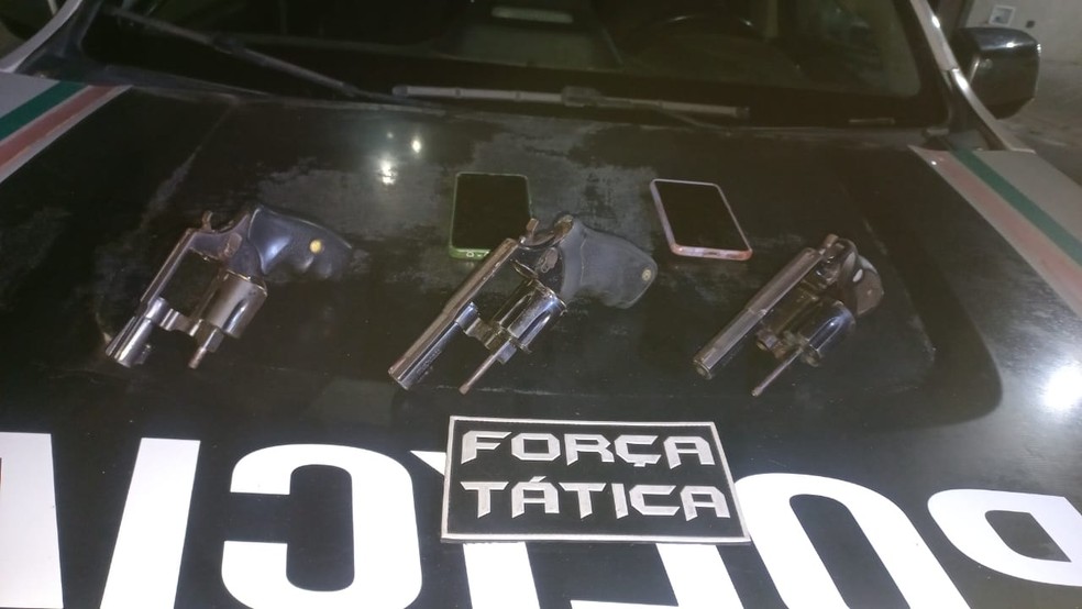 Ainda conforme a PM, os revólveres que estavam na posse dos suspeitos foram apresentados na Delegacia Regional de Itapipoca, onde foi registrado o procedimento.