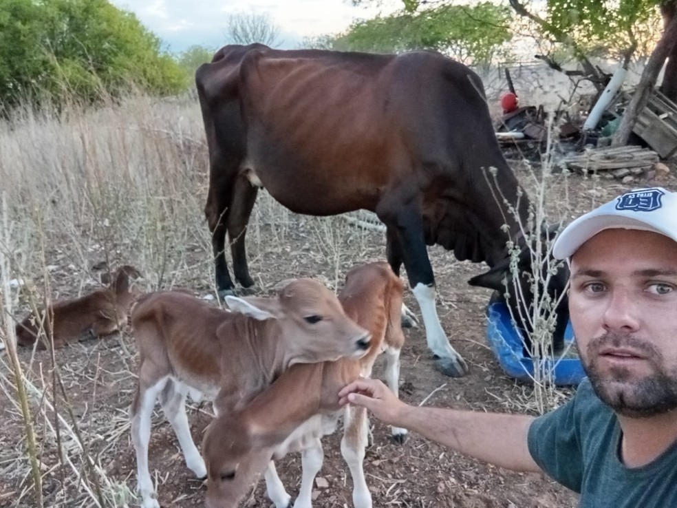 Vaca dá à luz bezerras trigêmeas no interior do Piauí; parto é extremamente raro — Foto: Arquivo pessoal/Renan Reis
