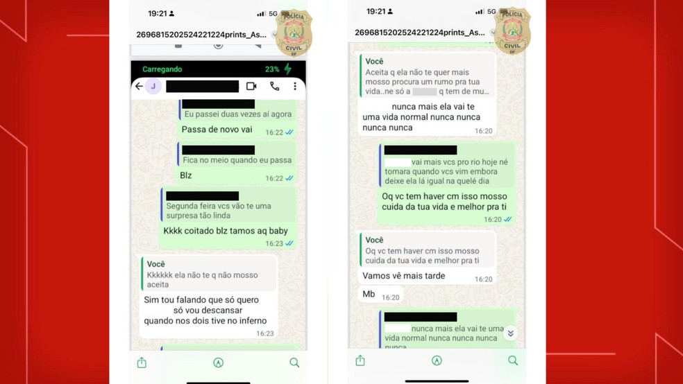 Mensagens mostram suspeito ameaçando ex-companheira no DF — Foto: PCDF